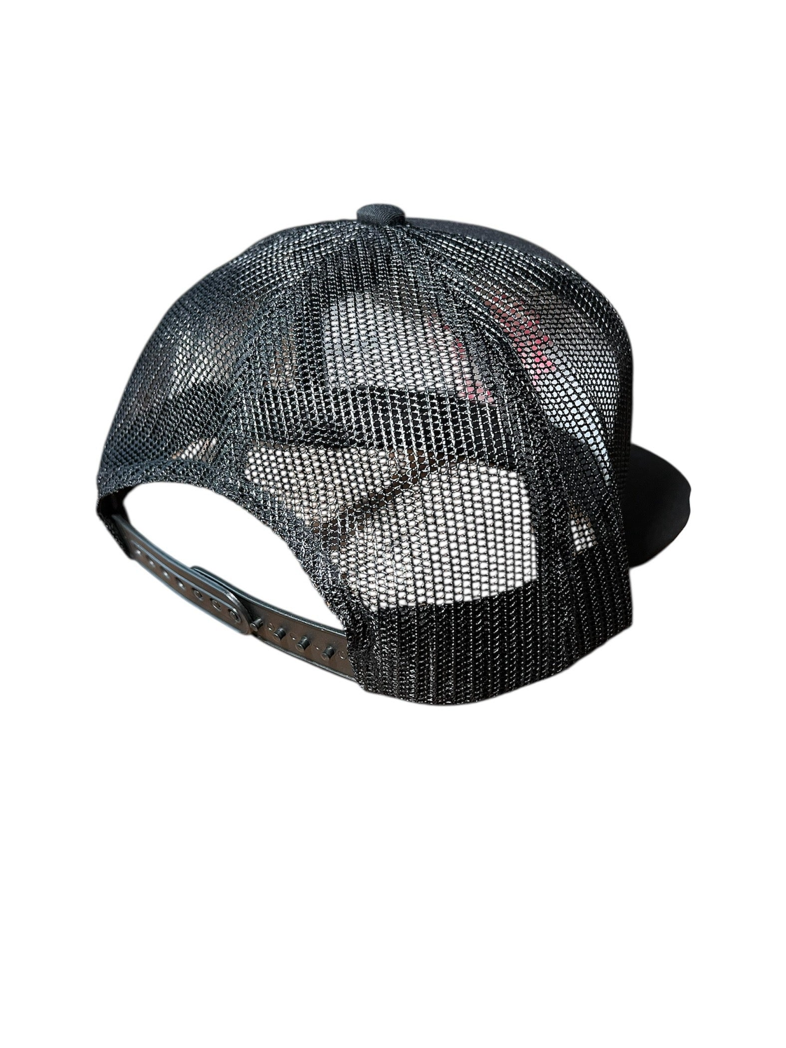 - Black Trucker Flatbill and Neon Pink Logo